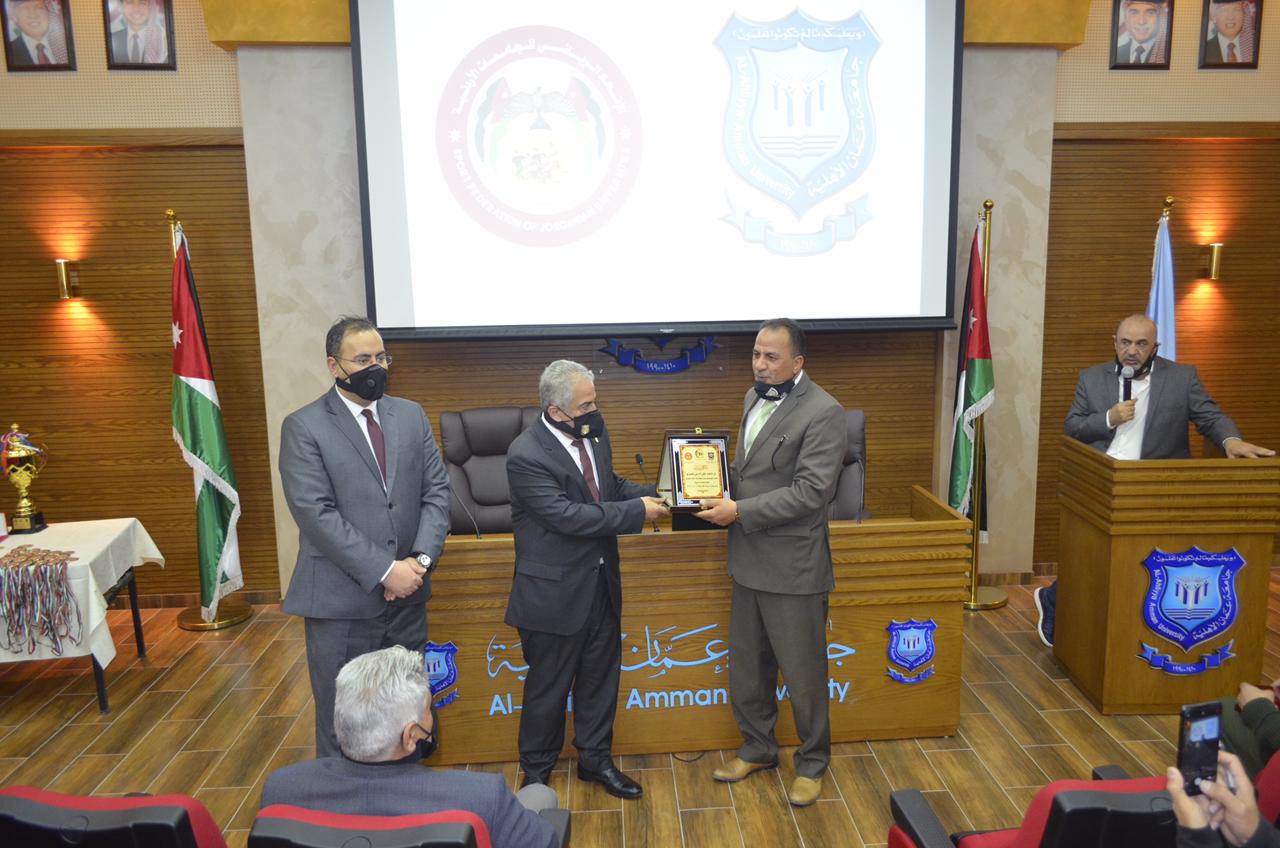 مال واعمال – الاردن -تعليم في 13 فبراير 2021 -توَّجَ الأستاذ الدكتور ساري حمدان رئيس الاتحاد الرياضي للجامعات الأردنية ( رئيس جامعة عمان الاهلية) الاربعاء 10-2-2021 في رحاب الجامعة الفرق الفائزة ببطولة الجامعات الأردنية للشطرنج حيث حصلت الأردنية على المركز الأول وكأس المجموع، وكأس الفردي ذكور وكأس الفردي إناث.